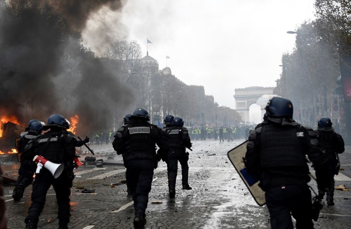 | الأمن الفرنسي يطلق الغاز المسيل للدموع على المحتجين بباريس |