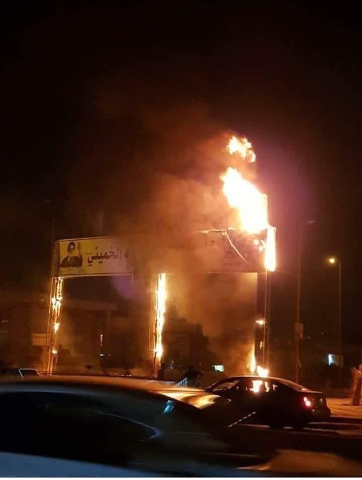 | عراقيون غاضبون يحرقون صورة الخميني في البصرة |