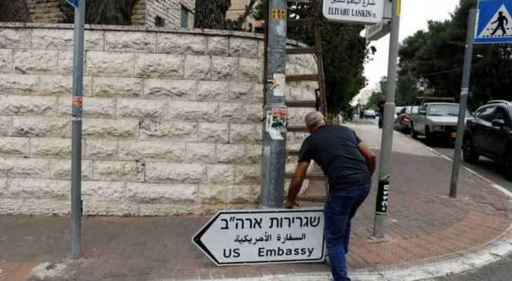 | وضع لافتة السفارة الأمريكية على شارع بالقدس |