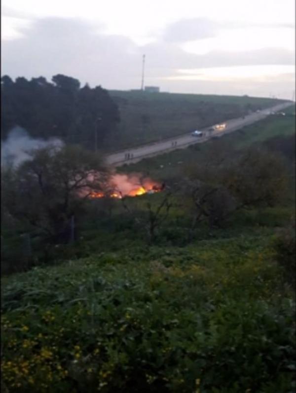 | الصور الأولى لحطام الطائرة "الإسرائيلية" في غور الاردن |