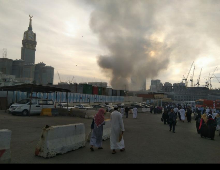 | حريق بمشروع توسعة مطاف الحرم المكي .. صور |