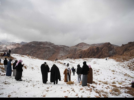 | سعوديون يحتفلون بالثلوج على جبال تبوك -صور |