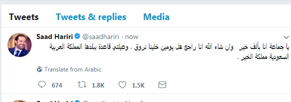 | الحريري : " أنا بألف خير وسأعود الى لبنان خلال يومين" |