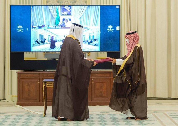 | الملك سلمان يتسلم أوراق اعتماد سفير قطر |