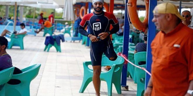 | مغامر يسبح من الأردن إلى مصر .. بـ "ساق واحدة"! |