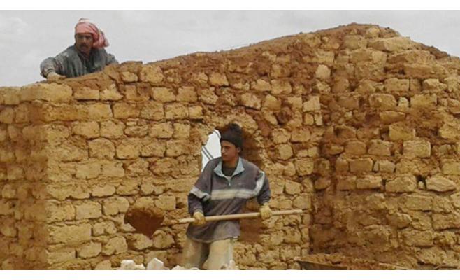 | لاجئو "الركبان" يستبدلون الخيام ببيوت طين |