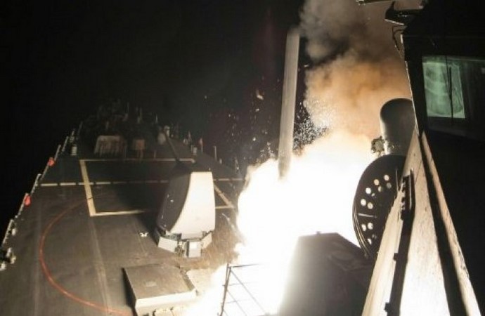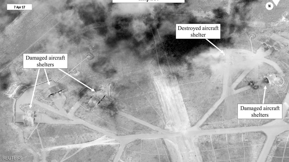 | عشرات الصواريخ الأميركية تستهدف قاعدة عسكرية بسورية |