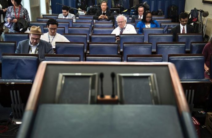 | البيت الأبيض مؤسسات إعلامية من حضور مؤتمر صحفي |