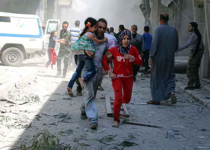 | قصف أكبر مستشفى في شرقي حلب بالبراميل المتفجرة |