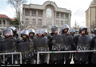 | القاء قنابل حارقة على السفارة السعودية في طهران |