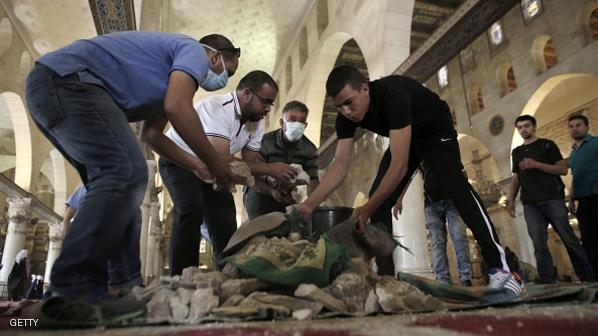 | الاحتلال يحطم بوابات الجامع ويعتدي على المعتكفين |