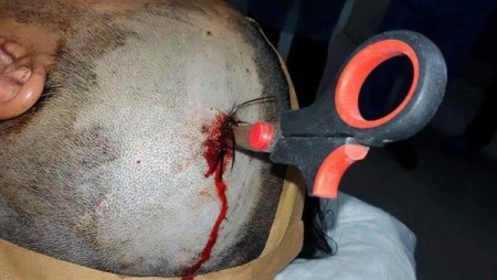 | شاب يطعن صديقه بمقص في راسه - صور |