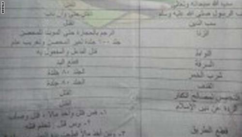 | داعش توزع لائحة "لحدود الله و أحكامها " |