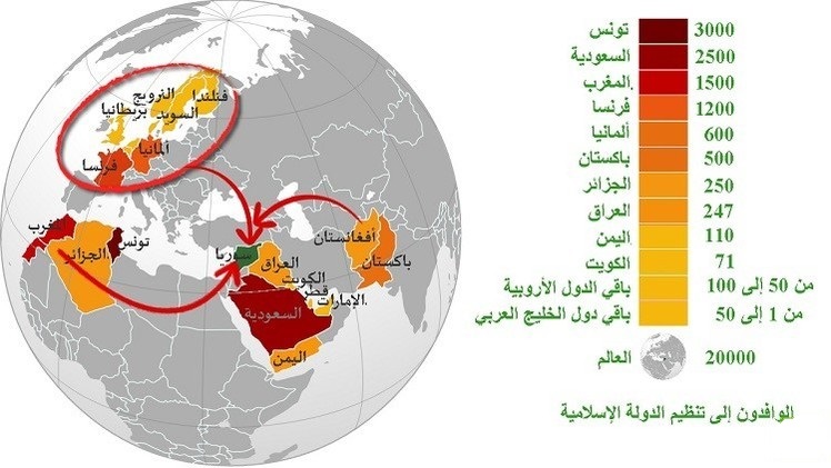 تصدرت القارة العجوز قائمة رافدي تنظيم داعش بالمقاتلين من مواطنيها حسب تقرير لصحيفة واشنطن بوست، وسجلت فرنسا الرقم الأكبر بـ1200 مسلح خلال الفترة من أكتوبر 2014 حتى يناير... |