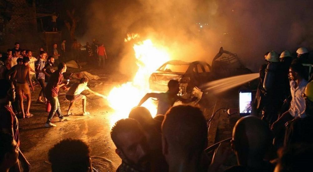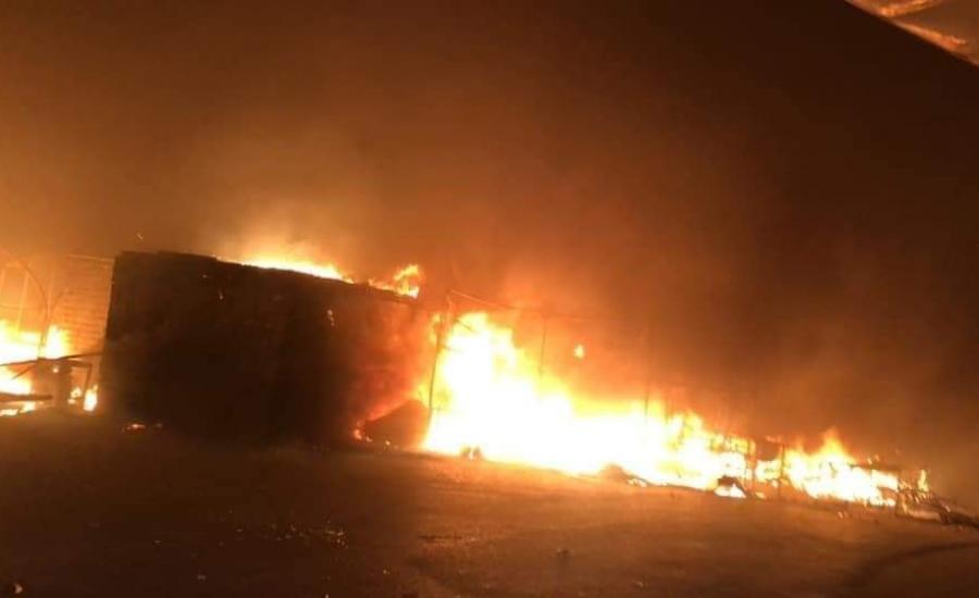 | لبنانيون يحرقون خيام للاجئيين السورييين |