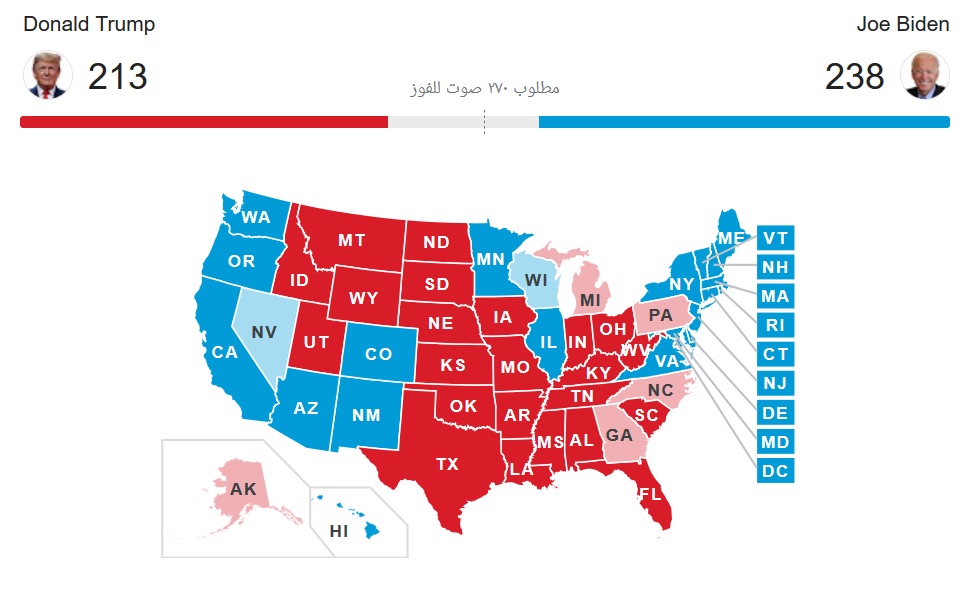 | مركز إديسون: بايدن اقتنص 227 من أصوات المجمع الانتخابي |