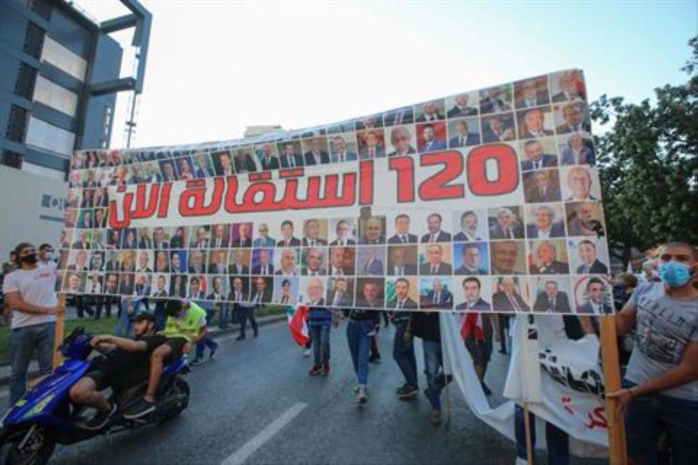 | مئات المتظاهرين وسط بيروت يطالبون باستقالة النواب |