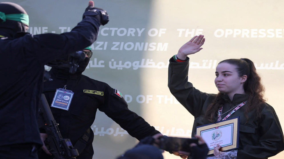 | تسليم محتجزة إسرائيلية للصليب الأحمر في جباليا شمالي قطاع غزة |