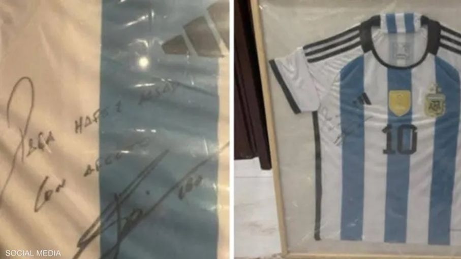 تداول نشطاء سوريون على مواقع التواصل الاجتماعي صورا تظهر قميصا موقعا من نجم منتخب الأرجنتين ليونيل ميسي، إلى حافظ الأسد نجل الرئيس السوري بشار الأسد.وقد ظهر في الصور التي... |