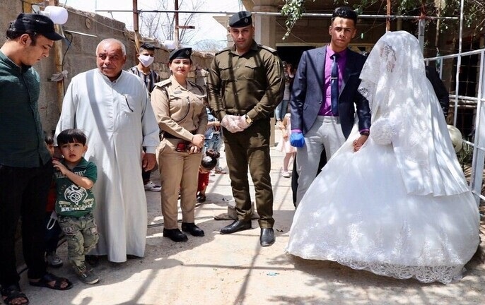 | الشرطة العراقية تزف 23 عريسا رغم حظر التجول |