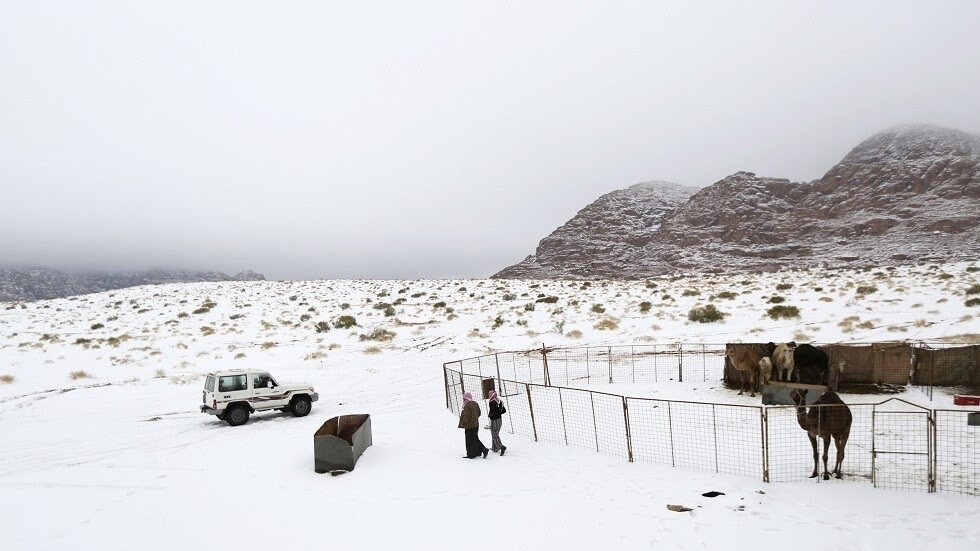 شهدت مرتفعات جبال اللوز في منطقة نيوم أقصى شمال غربي السعودية، يوم الأربعاء، هطول أمطار خفيفة مع تساقط خفيف للثلوج للمرة الثانية في عام 2020 الجاري.وتعد جبال اللوز من أعلى... |