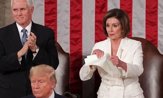 | نانسي بيلوسي تمزق خطاب ترامب - فيديو |