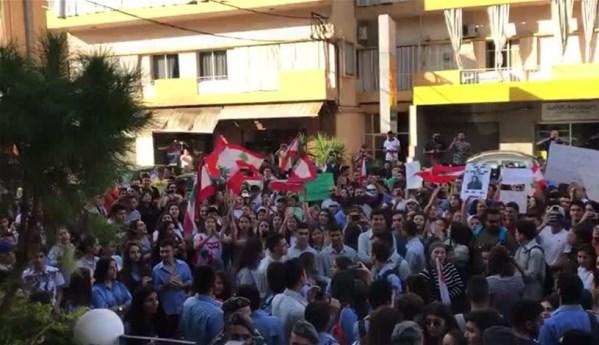| لبنان إعتصام طلابي حاشد يغلق وزارة التربية |