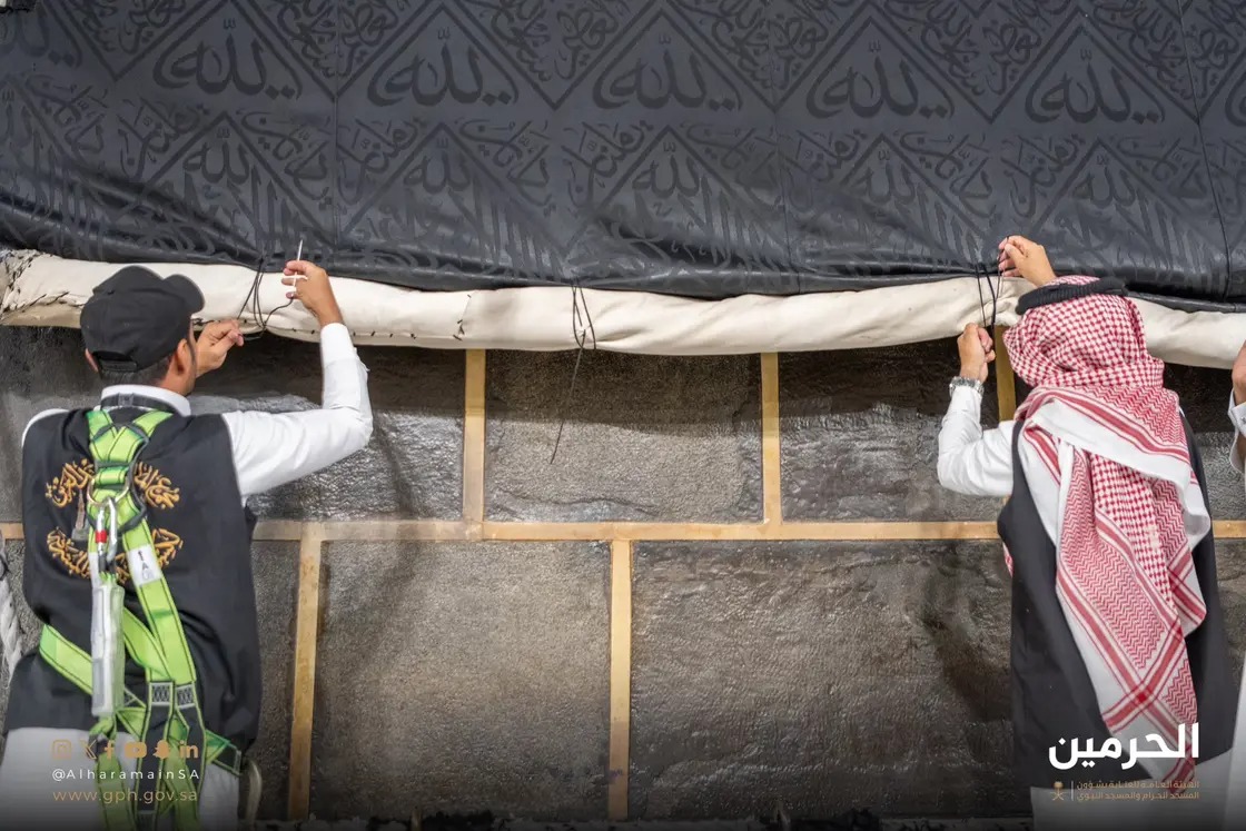 رفعت الهيئة العامة للعناية بشؤون الحرمين، الجزء السفلي من كسوة الكعبة المشرفة بمقدار ثلاثة أمتار تقريباً، وتغطية الجزء المرفوع بإزار من القماش القطني الأبيض بعرض مترين... |