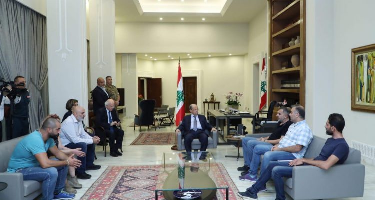 استقبل الرئيس اللبناني العماد ميشال عون وفدا من المتظاهرين برئاسة الصحافي رامي عليق الذين كانوا يقودون تظاهرة باتجاه القصر الجمهوري في بعبدا. واستقبل الرئيس عون المتظاهرين... |
