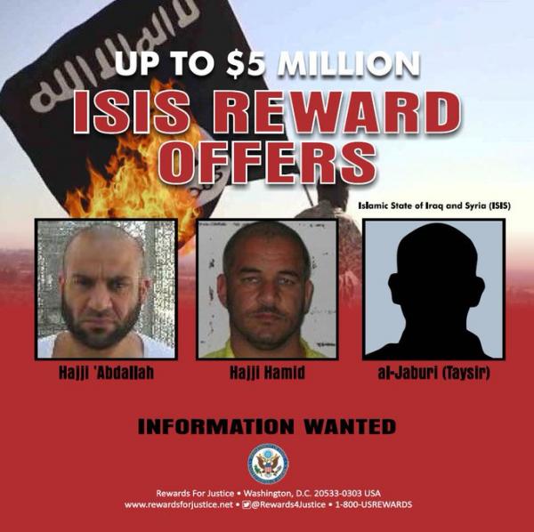 | 5 ملايين مقابل معلومات عن 3 قياديين في "داعش" |
