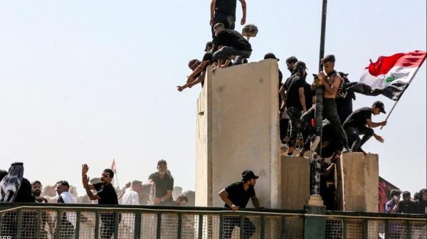 | اصابات بمحاولة متظاهرين اقتحام المنطقة الخضراء في بغداد |