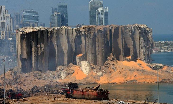 | انهيار جزء من صوامع القمح بمرفأ بيروت |
