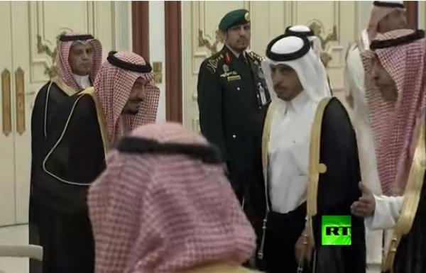 | الملك سلمان يصافح رئيس وزراء قطر - فيديو |