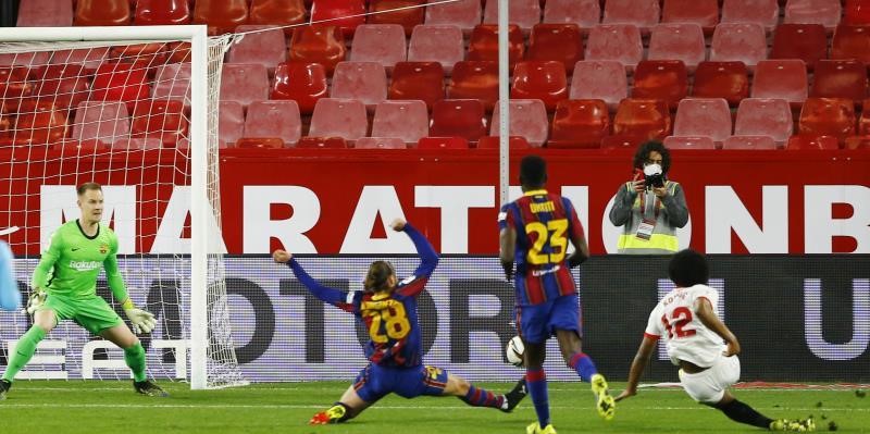 | إشبيلية يسقط برشلونة بثنائية ويضع قدما بنهائي الكأس |