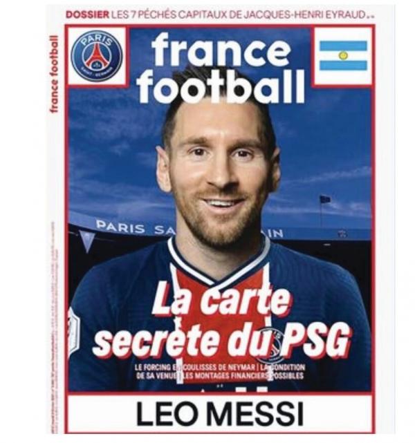 | "فرانس فوتبول" تصدم جماهير برشلونة بصورة ميسي بقميص سان جيرمان |