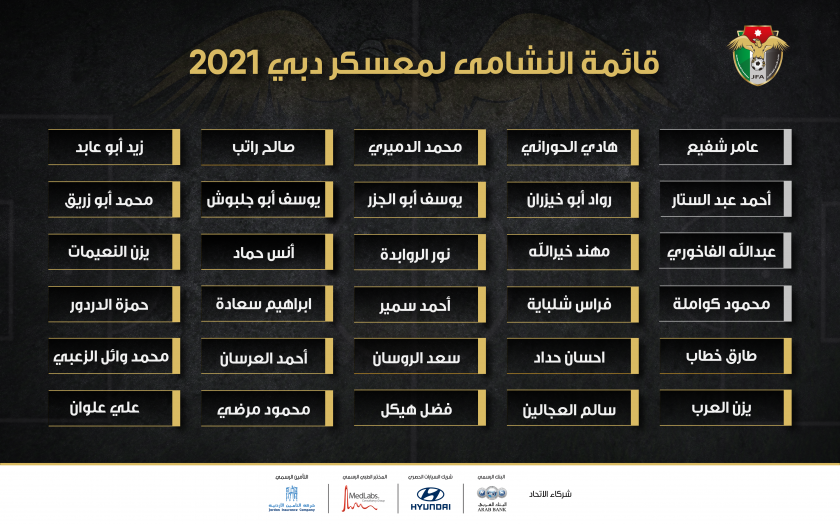 | منتخب النشامى يعلن قائمته لمعسكر دبي التدريبي |