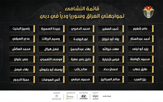 | 7 لاعبين جدد مع النشامى لمواجهتي العراق وسوريا - أسماء |