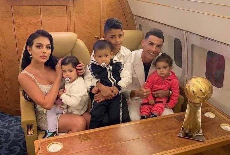 | رونالدو يحتفل مع عائلته بجائزة دبي جلوب سوكر |