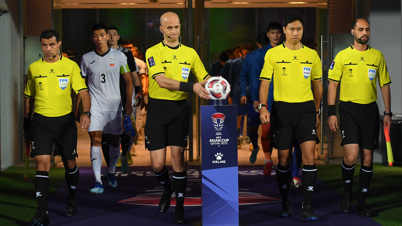 | طاقم حكام عماني لمباراة النشامى أمام طاجكستان |