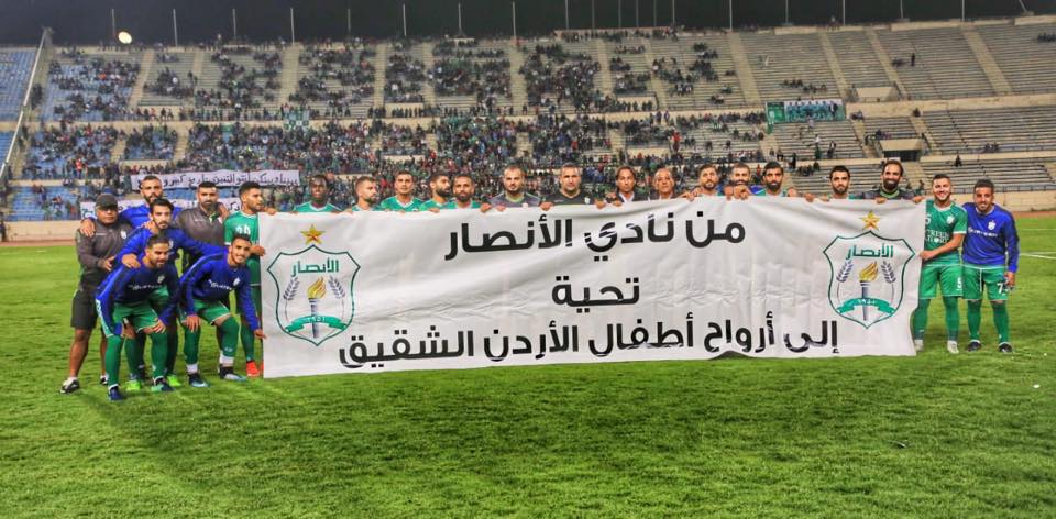 عبر لاعبو وجماهير فريق الأنصار اللبناني عن تضامنهم مع ضحايا حادثة البحر الميت، من خلال رفع لافتات في مباراة الفريق التي جرت أمس الجمعة مع فريق العهد ضمن الدوري... |