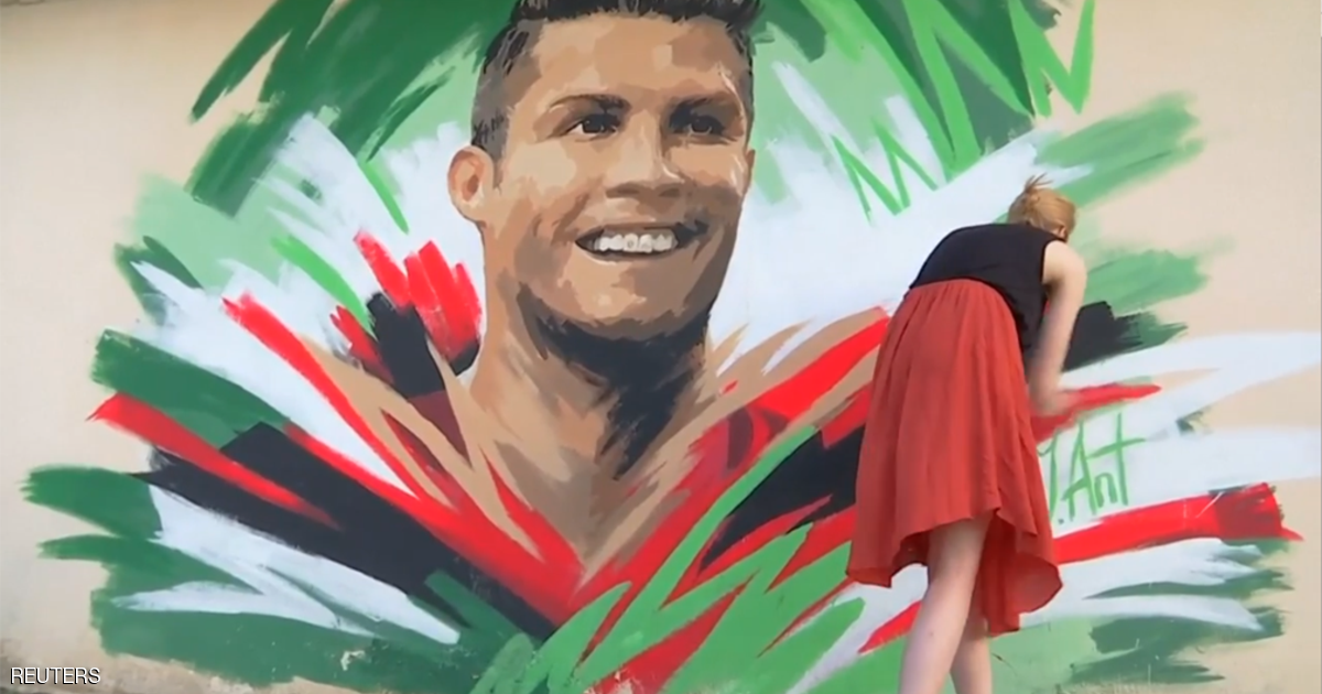 | روسية تتفنن بجدارية لرونالدو في سارانسك |