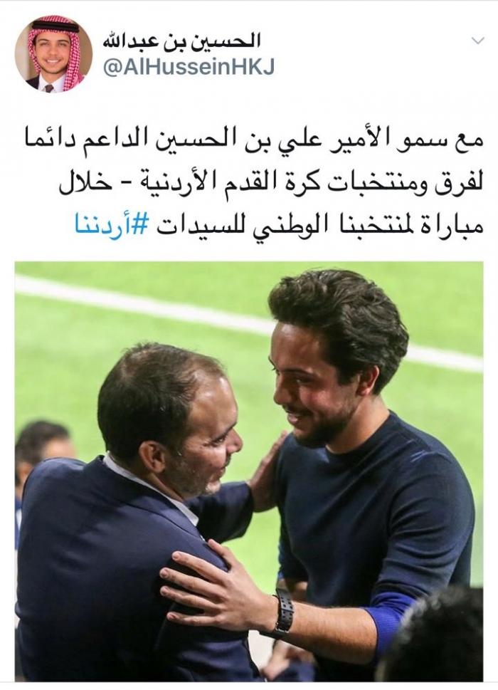 نشر ولي العهد الامير الحسين بن عبدالله صورة عبر صفحته الشخصية في موقع التواصل الاجتماعي تويتر تجمعه بالامير علي بن الحسين خلال مباراة للمنتخب الوطني للسيدات.وعلق ولي العهد... |
