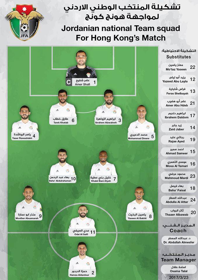 | تشكيلة النشامى أمام هونغ كونغ |