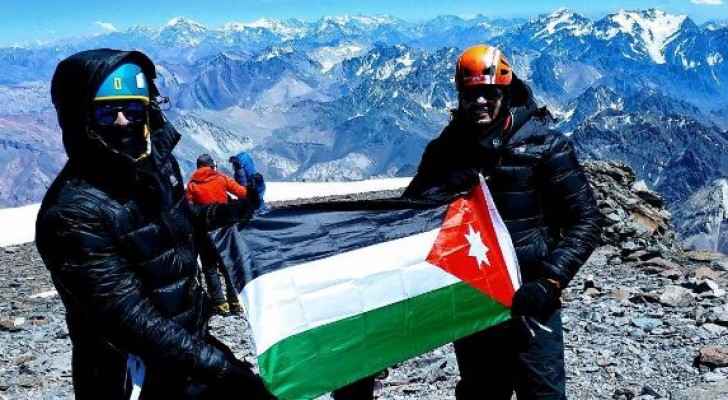| أردنيان وعلم البلاد فوق ثاني أعلى جبل في العالم |