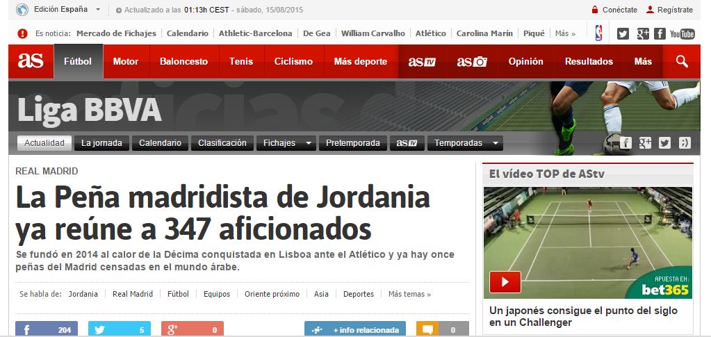 | آلاس الاسبانية تشيد بأردني مؤسس رابطة ريال مدريد في الاردن |