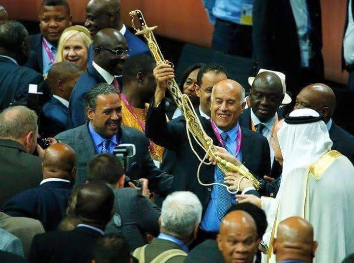 قام امير خليجي بإهداء بلاتر سيفا عربيا كهدية بعد اعلان انسحاب الامير علي وفوز بلاتر.السيف قدمه باليد رئيس الاتحاد الفلسطيني جبريل الرجوب والفرحة تغمره بعد فوز بلاتر. |