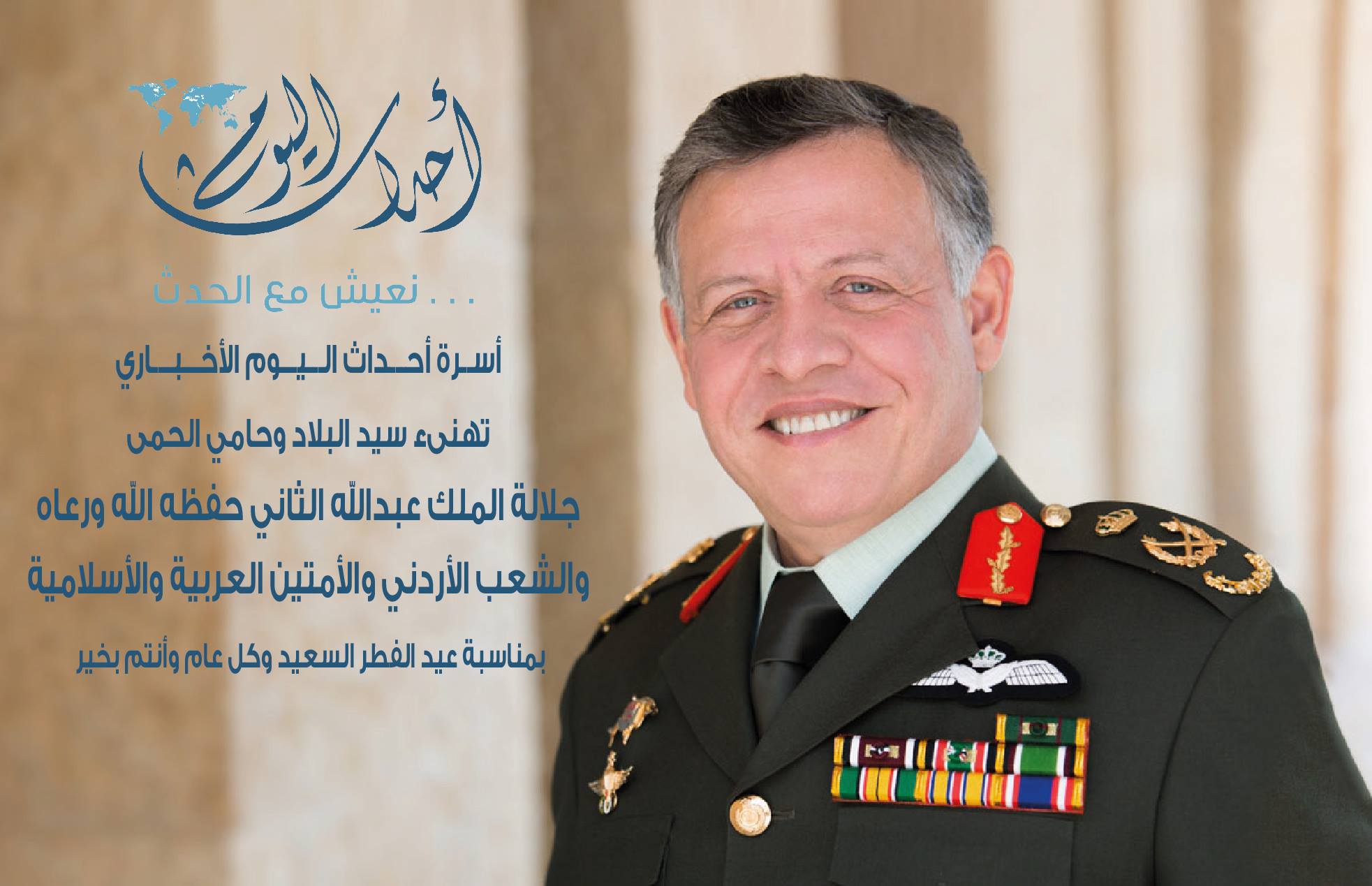 تغتنم أسرة تحرير وادارة أحداث اليوم الاخبارية مناسبة حلول عيد الفطر السعيد ، لترفع أسمى آيات التهنئة والتبريك الى مقام جلالة الملك عبد الله الثاني، وولي عهده الامين سمو... |