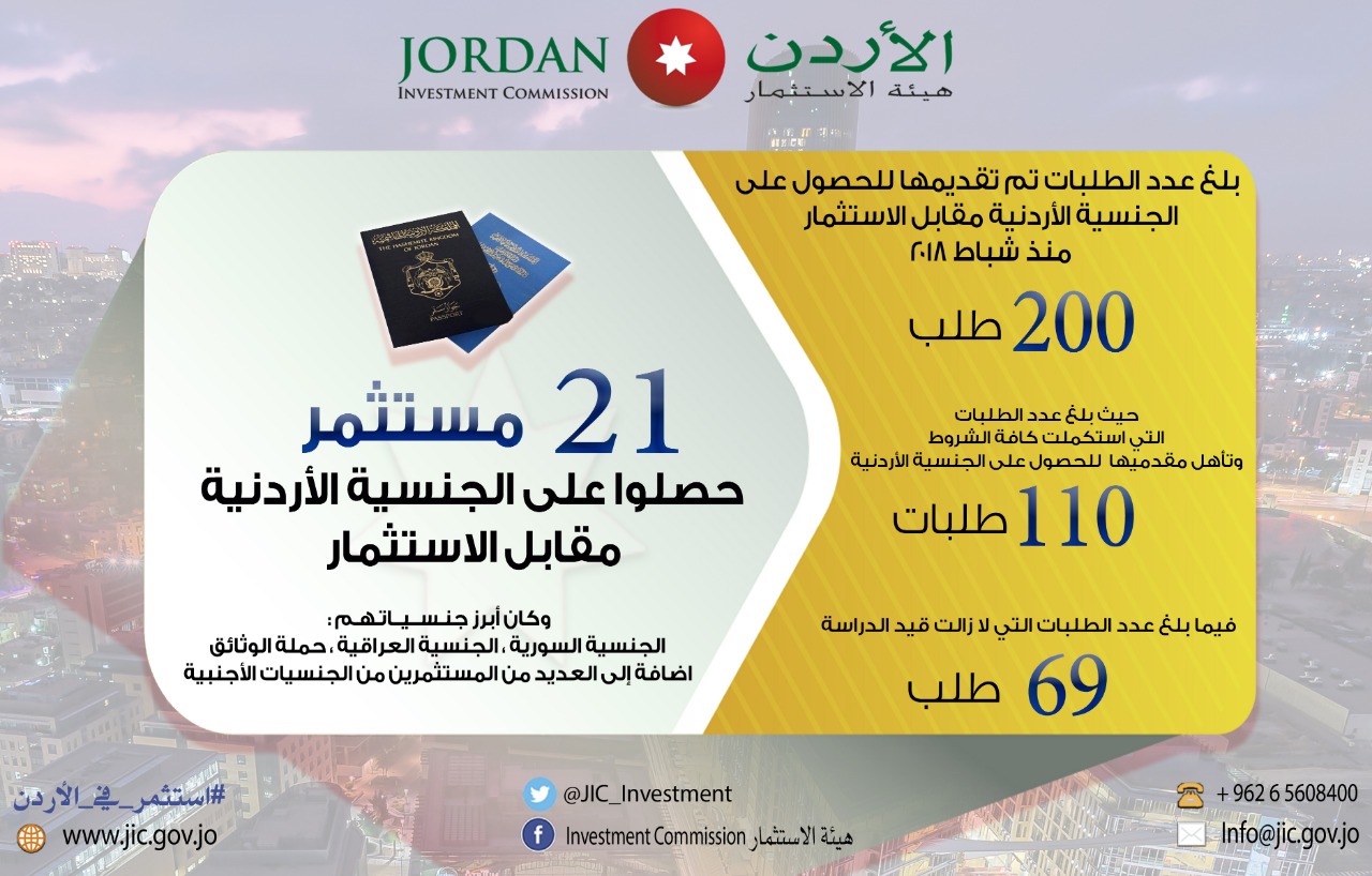 | الجنسية الأردنية لـ 21 مستثمراً |