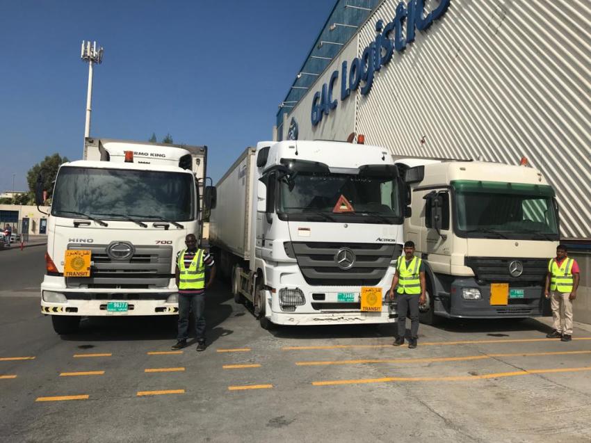 | اول 3 شاحنات من الإمارات الى لبنان عبر الاراضي السورية |