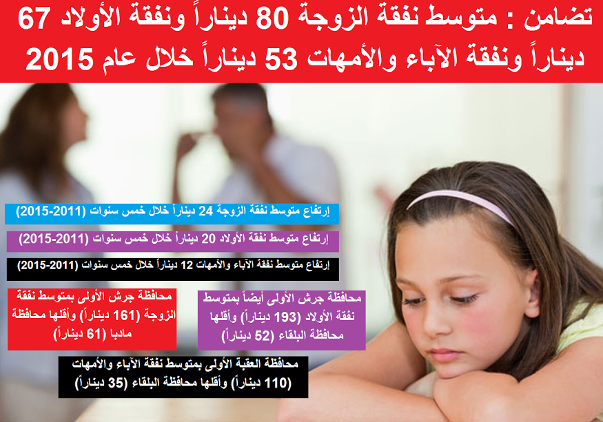 | متوسط نفقة الزوجة 80 ديناراً ونفقة الأولاد 67 ديناراً |